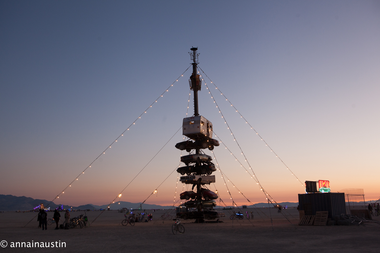 As Burning Man 2019 is coming up soon, it is time to get back into the mindset of dust, art with neon and fire effects, and bicycles and crazy art cars in the shape of dragons or covered wagons. At the bottom you’ll also see the art installation that was closed to climbing later in the burn.